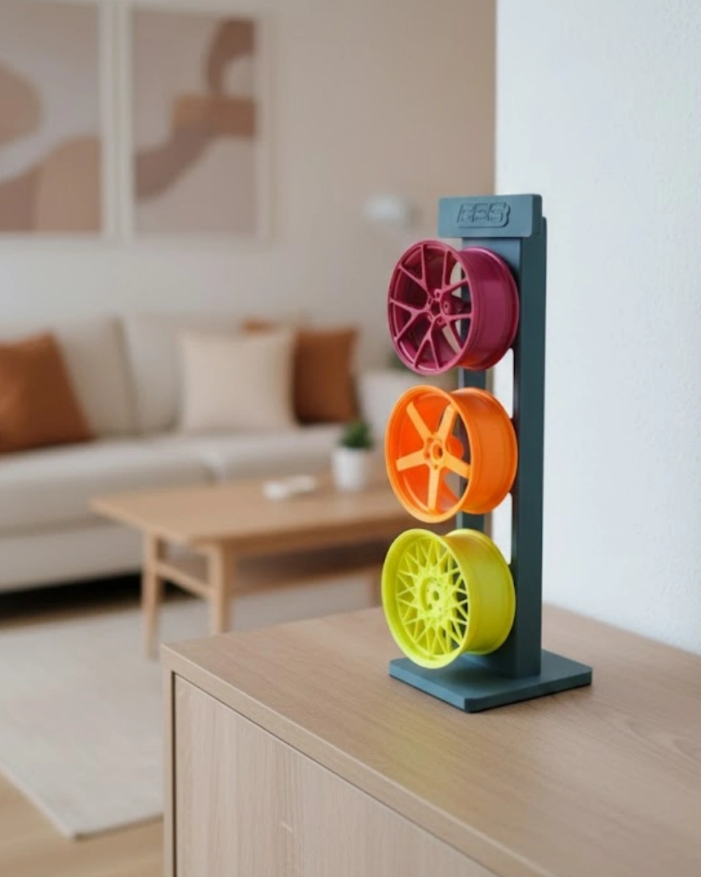 3’lü dekoratif jant seti, modern tasarımı ve renk uyumu ile dekorasyonda fark yaratmak isteyenler için tasarlanmıştır. Salon ve ofis ortamlarında es bir tamamlayıcı olarak kullanılabilir. Üçlü dizilimi sayesinde tek başına güçlü bir dekoratif görünüm sunar. Çalışma masası, sehpa veya raf üzerinde kolayca konumlandırılabilir. Spor ve modern dekor anlayışını bir arada sunan özel bir dekoratif üründür.