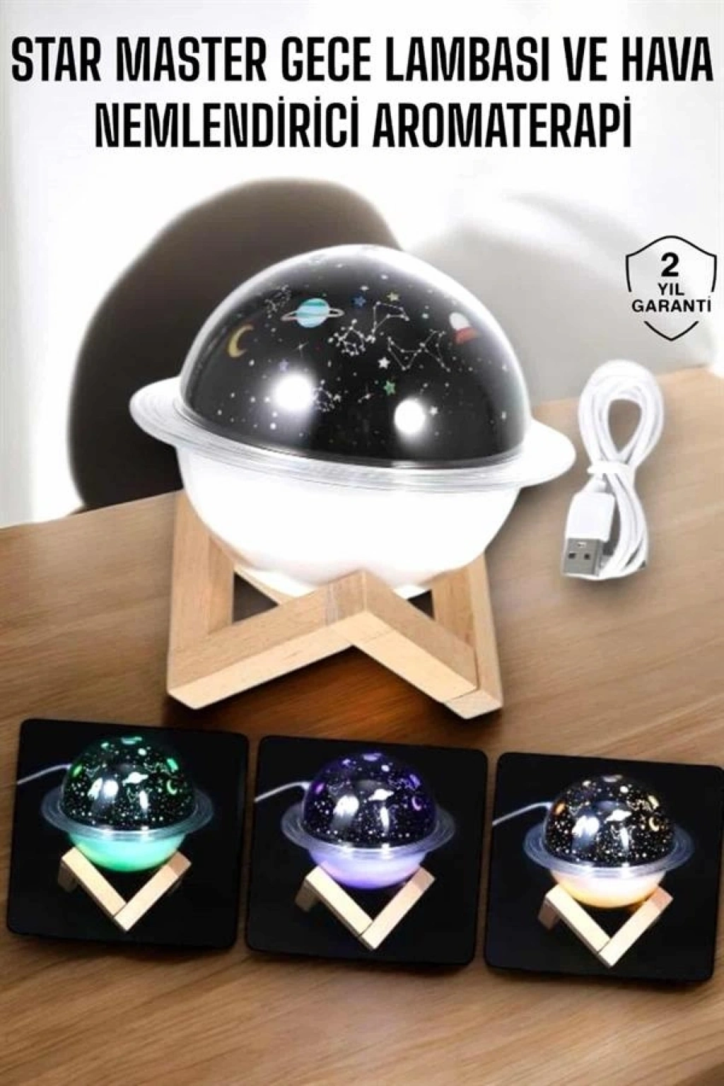 USB Projeksiyon Gece Lambası ve Hava Nemlendirici, kuru havanın zararlı etkilerini ortadan kaldırmak ve yaşam alanınızda sağlıklı bir atmosfer yaratmak için tasarlanmıştır. Bu cihaz, havayı nemlendirerek cilt kuruluğu, boğaz tahrişi ve öksürük gibi problemleri önler, nefes almayı kolaylaştırır ve cildinize ihtiyacı olan nemi sağlar. Şık ve zarif tasarımı, odanızın dekorasyonunu tamamlayan modern bir dokunuş sunar.Projeksiyon özelliği, cihazın sadece bir hava nemlendirici değil, aynı zamanda etkileyici bir gece lambası olarak da kullanılmasını sağlar. Odanıza huzurlu bir ambiyans sağlayan bu projeksiyon, rahatlamanıza ve stresinizi atmanıza yardımcı olur. Su haznesine ekleyebileceğiniz esans veya parfümlerle, yaşam alanınızı hoş kokularla doldurabilir ve aromaterapi etkisinden faydalanabilirsiniz. USB bağlantı özelliği, cihazın kolaylıkla taşınabilmesini ve farklı güç kaynaklarından enerji almasını sağlar.Bu nemlendirici cihaz, hem sağlığınızı destekler hem de es ihtiyaçlarınızı karşılar. Kompakt boyutları, kolay kullanımı ve fonksiyonel özellikleriyle gün boyu kaliteli hava solumanızı sağlar. Gece daha iyi bir uyku için kuru havanın zararlı etkilerini ortadan kaldırır, cildinizi korur ve yaşam alanınızı güzelleştirir.