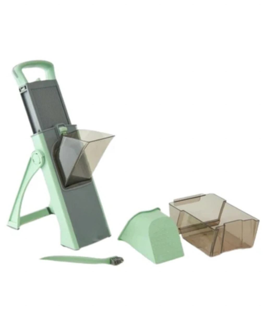 Paslanmaz çelikten üretilmiş bu el rendesi, sağlamlığı ve güvenli yapısıyla mutfakta uzun süreli kullanım sunar. Dayanıklı çelik gövde, günlük doğrama ve dilimleme işlemlerinde yüksek performans sağlar. Keskin ve paslanmaz bıçaklar, farklı sebze ve meyveleri kolayca işlemenize yardımcı olur.Üstte yer alan bastırma atı, kullanıcıya kontrollü ve dengeli bir doğrama deneyimi sunar. Bu yapı sayesinde eliniz doğrudan bıçaklarla temas etmez ve güvenli kullanım ön planda tutulur. Ergonomik tasarım, hem sağ hem sol el kullanımına uygundur.Katlanabilir kompakt tasarım, ürünü kullandıktan sonra rahatça saklamanızı sağlar. Temizlik fırçası, bıçak aralarında kalan parçaları zahmetsizce temizlerken, yiyecek toplama kabı mutfak tezgâhının dağılmasını önler. Şık ve modern görünümüyle mutfağınıza es bir katkı sağlar.