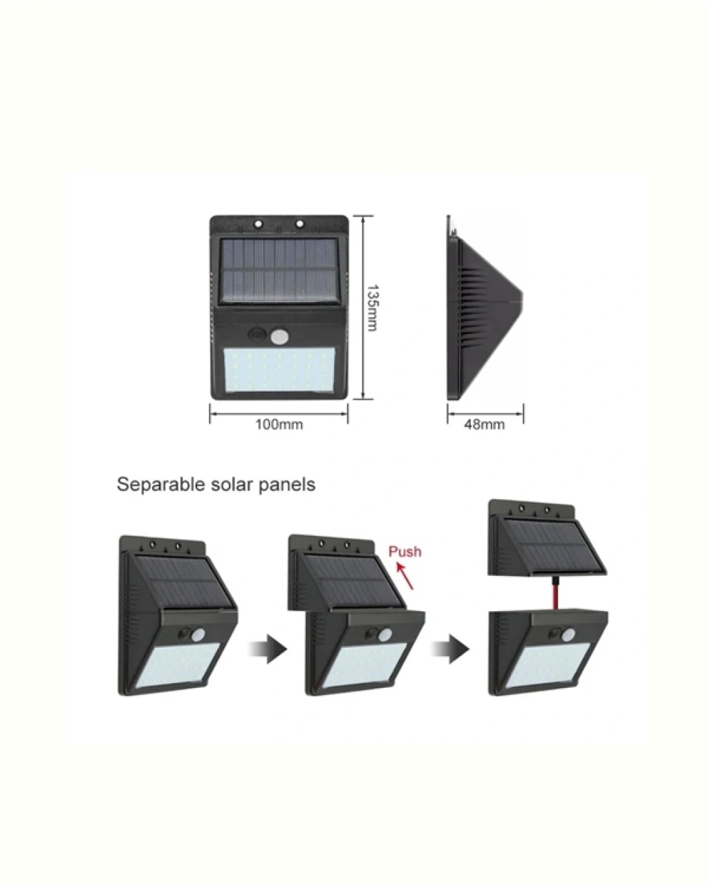 Karanlık alanlarda güvenliği ve görünürlüğü artırmak için hem çevre dostu hem de maliyetsiz bir çözüm arıyorsanız, doğru yerdesiniz. Hareket Sensörlü Solar Enerjili 20 LED Duvar Lambası, enerjisini tamamen güneşten alan, kablo gerektirmeyen, düşük maliyetli ve yüksek performanslı bir aydınlatma cihazıdır. Bu ürün sayesinde evinizin dış cephesinden bahçenize, garaj girişinden merdiven basamaklarına kadar tüm alanlar gece boyunca güvenli, aydınlık ve şık bir şekilde görünür olur.Solar Enerji ile Otomatik Şarj – Elektrik Faturasına SonLamba, üzerindeki yüksek verimli güneş paneli sayesinde gün boyunca güneş ışığını emerek 1200 mAh lityum bataryasını otomatik olarak şarj eder. Bu sayede geceleri enerjiye ihtiyaç duyduğunda hiçbir ekstra kaynağa gerek kalmadan çalışabilir. Tam şarj olduğunda 8 saate kadar kesintisiz ışık sağlar. Elektrik bağlantısına ihtiyaç duymadan, tamamen doğa dostu ve ücretsiz bir enerji kaynağıyla çalışan bu lamba, elektrik faturalarınızı düşürürken karbon ayak izinizi de azaltır.Gelişmiş PIR Hareket Sensörü ile Akıllı AydınlatmaLambanın merkezinde yer alan PIR (Pasif İnfrared) sensör, hareketleri 120° geniş açıyla ve 3-4 metreye kadar algılayabilir. Akşamları veya geceleri biri yaklaştığında otomatik olarak yanar, 10 ila 25 saniye boyunca ışık yayar ve ardından hareket algılanmazsa otomatik olarak kapanır. Bu özellik hem enerji tasarrufu sağlar hem de beklenmeyen misafirlere karşı caydırıcı güvenlik sunar.4 Farklı Aydınlatma Modu ile Kullanım EsnekliğiKlasik lambalardan farklı olarak, bu ürün çok işlevli aydınlatma modlarına sahiptir: Kapalı Şarj Modu – Gündüzleri şarj olur, gece yanmaz. Hareketle Aktifleşen Parlak Işık – Sadece hareket algılandığında yüksek parlaklıkta yanar. Kısık Işık + Hareketle Parlak Işık – Hareketsizken kısık, hareket algılandığında tam parlaklıkta çalışır. Sürekli Kısık Işık Modu – Gece boyunca kısık ışıkla sürekli yanar.Bu modlar sayesinde ürünü ister güvenlik ışığı, ister dekoratif bahçe lambası, ister gece boyunca loş aydınlatma olarak kullanabilirsiniz.Su Geçirmezlik ve Dış Mekan Dayanıklılığı (IP65)IP65 su geçirmezlik sertifikası, ürünün yağmur, kar, rüzgar ve aşırı sıcaklıklara karşı dayanıklı olduğunu garanti eder. Sağlam ve sert plastikten üretilmiş gövdesi, çizilmelere ve darbelere karşı dayanıklıdır. Yıllarca bozulmadan, sararmadan, çatlamadan kullanılabilir. Bahçe, veranda, balkon, garaj kapısı, yürüyüş yolları, çitler ve hatta çiftliklerde bile sorunsuzca görev yapar.Kurulumu Çok Kolay – Kablo Yok, Elektrikçi YokBu ürünün kurulumu için herhangi bir teknik bilgiye ihtiyacınız yok. Paket içeriğindeki vidalar yardımıyla, sadece birkaç dakika içinde duvara veya çite monte edebilirsiniz. Kablo çekmeye ya da prize ulaşmaya çalışmanıza gerek kalmaz. Güneşi gören herhangi bir dış yüzey ürünü monte etmek için yeterlidir. İhtiyacınız olan tek şey, güneş ışığını alabileceği uygun bir yer seçmek.Teknik Özellikler: Pil Kapasitesi: 1200mAh Li-ion batarya Giriş Voltajı: 3.7V LED Gücü: 0.2W x 20 LED Hareket Algılama Açısı: 120° Algılama Mesafesi: 3-4 metre Gecikme Süresi: 10 – 25 saniye Aydınlatma Modları: 4 farklı mod Gövde Malzemesi: Yüksek yoğunluklu sert plastik Renk: Siyah Boyut: Kompakt ve hafif