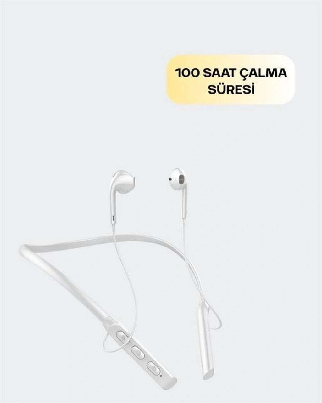 Bu kablosuz kulaklık, boyun askılı ergonomik tasarımı ile uzun süreli kullanım için özel olarak üretilmiştir. Tek şarjla 100 saate kadar müzik dinleme veya telefonla konuşma imkânı sunar. Yüksek batarya kapasitesi sayesinde sık sık şarj etme ihtiyacını ortadan kaldırır. Bluetooth teknolojisi ile cihazlarınıza hızlıca bağlanır ve bağlantı kopmaları yaşamadan kesintisiz iletişim sağlar.Yumuşak ve esnek boyun askısı, kullanım sırasında ağırlığı eşit dağıtarak boyun bölgesine yük bindirmez. Kulaklık uçları kulak içine tam oturur, dış sesleri izole eder ve konforlu bir müzik dinleme deneyimi sağlar. Manyetik kulaklık başlıkları sayesinde kullanılmadığında kolayca sabitlenebilir ve dağınıklık önlenir.Gelen aramaları cevaplama, müzik durdurma/başlatma gibi işlemler kulaklık üzerinden kolayca kontrol edilebilir. Yüksek çözünürlüklü mikrofonu sayesinde telefon görüşmeleri sırasında ses karşı tarafa net şekilde iletilir. Video izleme, çevrimiçi toplantılar ve oyun oynama gibi farklı senaryolarda ideal performans sunar. Günlük kullanım, spor ve seyahat için uygundur. USB kablo ile kolayca şarj edilir ve hızlı şarj desteği sayesinde kısa sürede tekrar kullanıma hazır hale gelir.