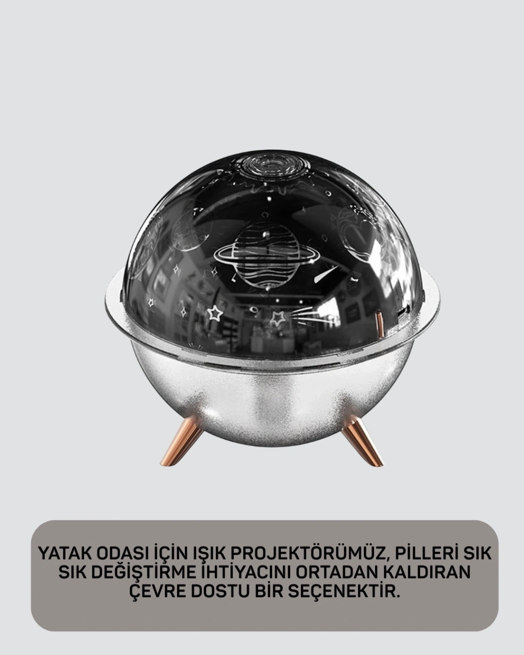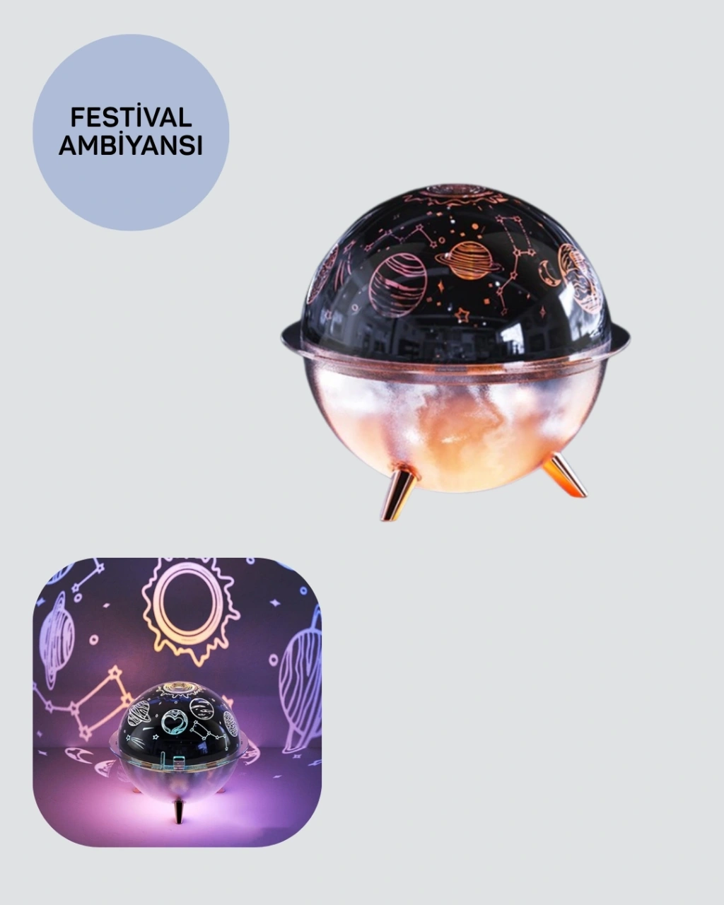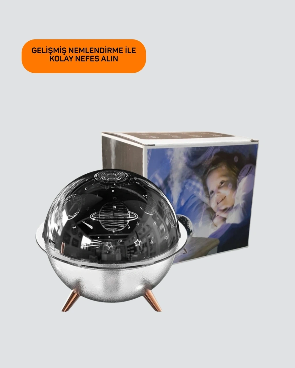 Uzay atmosferi sunan bu USB nemlendiricili ışık projektörü, hem çocuklar hem de yetişkinler için keyifli bir deneyim sunar. Galaksi ve yıldız efektleri ile huzurlu bir ortam yaratır.Nemlendirme özelliği, kuru havayı dengelerken USB ile çalışması kullanım kolaylığı sağlar. Dekoratif, fonksiyonel ve hediye olarak tercih edilebilecek çok yönlü bir üründür.