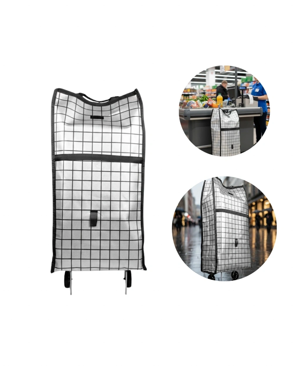 Şehir hayatında alışverişi kolaylaştıran bu tekerlekli pazar çantası, fonksiyonel tasarımıyla öne çıkar. Geniş hacmi, dayanıklı kumaşı ve sağlam tekerlek yapısı sayesinde günlük kullanımda güven verir. Alışveriş sırasında ürünleri düzenli şekilde taşımanıza yardımcı olur.Tekerlekli mekanizma, ağır yükleri zahmetsizce taşımanızı sağlar. Özellikle uzun mesafelerde veya yokuşlu alanlarda kullanıcıya büyük avantaj sunar. Ergonomik tutma sapı sayesinde kontrol kolaydır ve sürüş sırasında denge korunur.Evde, pazarda veya markette rahatlıkla kullanılabilen bu çanta, günlük alışveriş rutininizi daha konforlu hale getirir. Dayanıklı yapısı ve pratik kullanımı ile uzun süre güvenle tercih edilebilir.