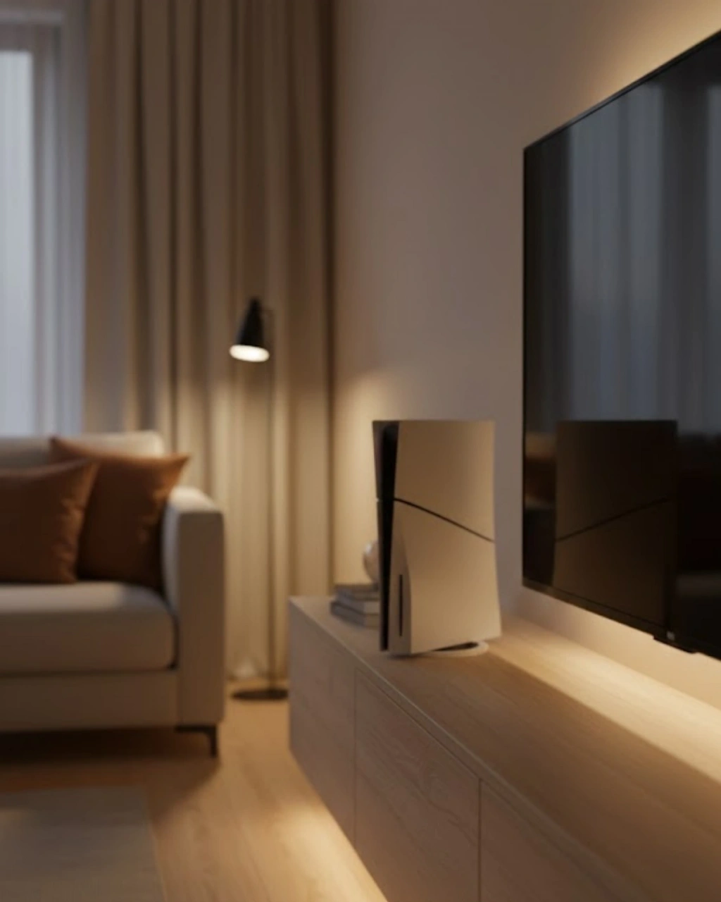 Konsol tutucu stand, oyun alanlarında düzen ve es arayanlar için tasarlanmıştır. Dikey konumlandırma sayesinde konsolunuzu güvenli bir şekilde sergilemenizi sağlar. Masa, raf veya TV ünitesi üzerinde rahatlıkla kullanılabilir. Şık ve minimal yapısı sayesinde hem salon hem de oyun odası dekorasyonuna uyum sağlar. Kullanışlı ve düzenleyici bir aksesuardır.