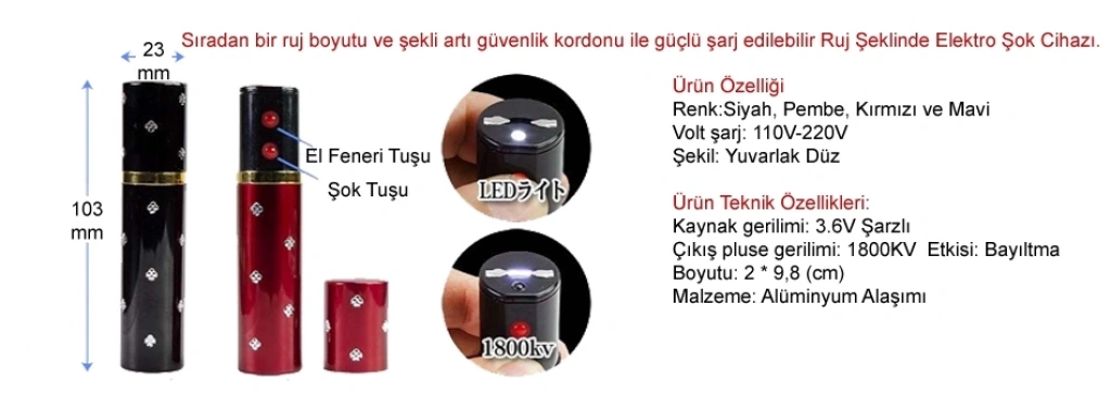 -Düğmeye basarak aktif hale getirdiğinizde yüksek akım ile çıkarttığı ses ve ışık görüntüsü çok ürkütücü olduğu için temas etmeden bile saldırganı korkutur ve kaçmasına neden olur