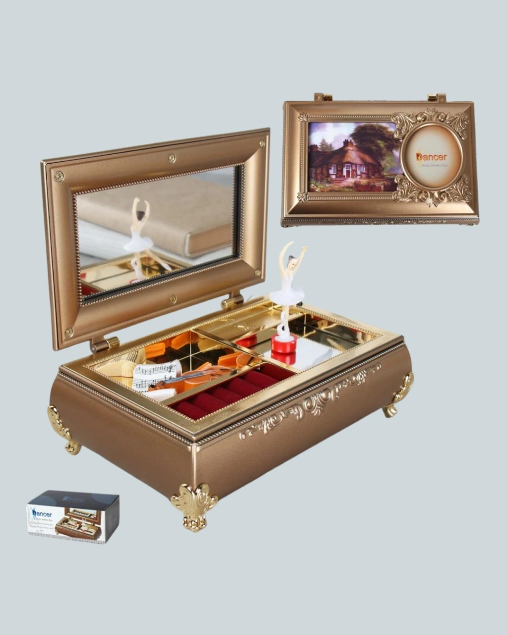 Balerinli müzikli takı kutusu, şık piyanovari tasarımı ile hem görsel hem işlevsel açıdan zengin bir üründür. Fırınlama boya tekniği sayesinde yüzeyi dayanıklıdır ve uzun süre yeni görünümünü korur. Parlak beyaz veya pastel tonlara sahip olması, ürünü özellikle kız çocuklarının odalarında romantik bir dekor haline getirir.Kutunun iç kısmında balerin figürü yer alır. Müzik başladığında bu figür eşliğinde oluşan görüntü, masalsı bir hava yaratır ve ürüne benzersiz bir karakter kazandırır. Melodi, ortamda hoş bir atmosfer oluşturur ve ürünü sadece bir takı kutusu olmaktan çıkarıp duygusal bir obje haline getirir.Takı kutusu içinde bulunan bölmeler yüzük, bileklik, küpe ve kolye gibi aksesuarların düzenli bir şekilde saklanmasına imkân tanır. Bu sayede hem es bir kutu elde edilir hem de takılar kaybolmadan düzenli biçimde korunur.Ürün hediye olarak verildiğinde de çok beğeni toplar. Bale ve müzik seven kız çocukları, genç kızlar veya nostaljik ürünleri seven yetişkinler için ideal bir armağandır. Özel günlerde kalıcı bir anı oluşturmak isteyenler için etkileyici bir tercihtir.Piyano formundaki dış tasarım; makyaj masası, komodin, raf ve vitrin gibi alanlarda dekoratif bir obje olarak kendini gösterir. Es çizgileri sayesinde yaşam alanına sanatsal bir dokunuş katar.Balerinli müzikli takı kutusu, hem tasarımının romantik havası hem işlevsel kullanım avantajlarıyla, her yaş grubuna hitap eden çok özel bir üründür. Hem şıklığı hem düzen sağlama işleviyle yaşam alanlarını güzelleştirir ve unutulmaz bir hediye seçeneği oluşturur.