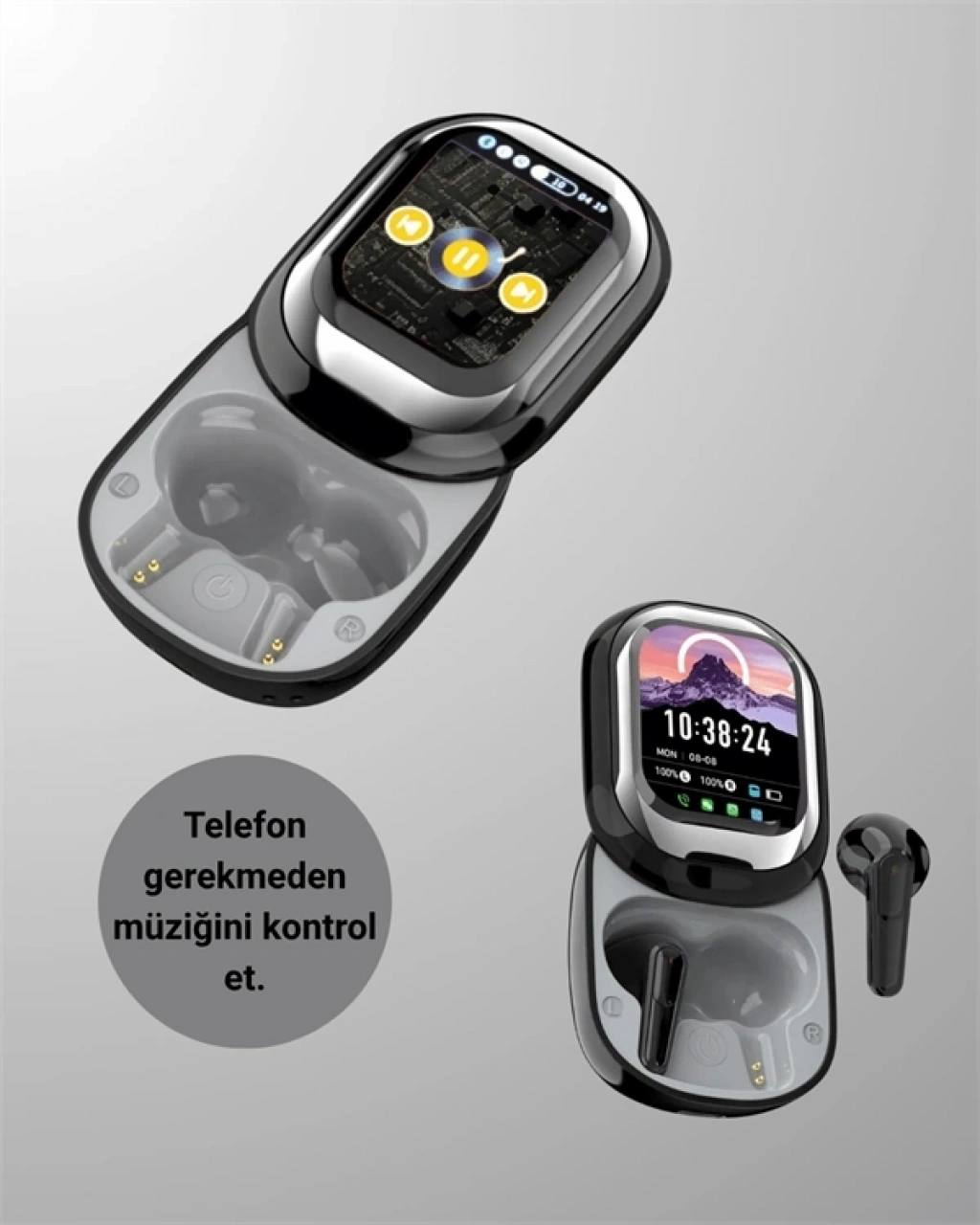 Yeni nesil Bluetooth 5.4 teknolojisiyle donatılmış bu akıllı ekranlı kablosuz kulaklık, üstün bağlantı hızı, düşük gecikme ve enerji verimliliği sunar. Günlük kullanımda hem müzik hem oyun için kararlı bir performans sağlar.Şarj kutusunda yer alan akıllı LED ekran, pil durumunu gösterir; saat, tarih ve isteğe bağlı ekran temalarıyla kişiselleştirilebilir. Hatta bazı modellerde kendi fotoğrafınızı yükleyerek kutuyu tamamen size özel hale getirebilirsiniz.Dokunmatik kontrol özelliği, müzik geçişi, çağrı yanıtlama ve mod değiştirme işlemlerini sadece parmak hareketinizle yapmanıza olanak tanır. Fiziksel tuşlara gerek kalmadan hızlı ve sezgisel bir kullanım deneyimi sunar.İki farklı kullanım modu sayesinde, müzik modunda zengin ses detayları, oyun modunda ise ultra düşük gecikme ile kesintisiz bir deneyim elde edersiniz. Dahili ENC teknolojisi, çevresel gürültüyü azaltarak telefon görüşmelerinde daha net ses kalitesi sağlar.Ergonomik ve hafif tasarımı, uzun süreli kullanımda bile kulakta konfor sağlar. Gelişmiş özellikleri, şık görünümü ve kişiselleştirilebilir detaylarıyla bu kulaklık, teknolojiyi stil ile buluşturan modern kullanıcılar için mükemmel bir seçimdir.